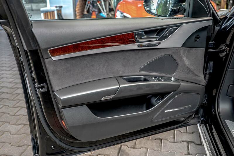 Наличен Audi SQ8 4.0TDI Допълнително оборудване: Завиване на всички колела, пакет Tour assistant, интерфейс за смартфон Audi, електрически регулируеми, отопляеми и сгъваеми външни огледала с автоматично затъмняване и функция за памет, външни огледала в цвета на каросерията, Bluetooth система за свободни ръце с гласово разпознаване (Audi Phone Box), черни релси на покрива, LED светлини за влизане с функция за прожектиране, система за подпомагане на водача: асистент за смяна на лентата (Side Assist), включително Audi pre sense заден ход, климатизирано предно стъкло / акустично стъкло, HD Matrix LED фарове, интериорни елементи: карбонови инкрустации, система за камери за обкръжаващо виждане (Top View), комфортен ключ със сензорно контролирано отключване на задната врата и алармена система против кражба (отваряне + затваряне), пакет контурно / амбиентно осветление (плюс), спортен кожен волан (3-лъчев, сплескан в долната част) с мултифункционални и превключващи лостчета, електрически регулируема кормилна колона. Регулируеми алуминиеви джанти 10x22 (5-лъчеви, контрастно сиви, частично полирани), металическа боя, черен стилистичен пакет, панорамен люк (електрически отпред, фиксиран заден), цифрово радио (DAB), система за следене на налягането в гумите, разделена/сгъваема, плъзгаща се облегалка на задната седалка (40:20:40), S спортни седалки plus отпред, електрическо затваряне на вратите, тапицерия на седалките: кожа Valcona с диамантени шевове, електрически регулируеми предни седалки (седалката на водача с памет), озвучителна система Bang & Olufsen, допълнително отопление, тонирани задни стъкла (затъмнени стъкла). Допълнително оборудване: Деактивиране на въздушната възглавница за пътника, въздушни възглавници за водача/пътника, Audi connect (интернет-базирани услуги), Audi connect (система за спешни повиквания и асистенция), Audi Drive Select, Audi music interface, външни огледала с автоматично осветяване на бордюра, дясно, органи за управление с визия „стъкло“, включително разширена алуминиева визия, черно боядисани спирачни апарати, черна текстилна таванна облицовка, спойлер на покрива, помощ при паркиране отпред и отзад с акустичен и визуален дисплей (APS Plus), осветени лайсни на праговете на вратите с алуминиева инкрустация и надпис, система за подпомагане на водача: спирачен асистент (Audi pre sense front), система за подпомагане на водача: асистент за дълги светлини, система за подпомагане на водача: система за защита на пътниците (Audi pre sense basic), система за подпомагане на водача: предупреждение за напускане на лентата на движение, велурени стелки за пода, електрическо отваряне на задна врата. Управлявано (отваряне + затваряне), Пакет Gloss, Резервоар за урея (SCR): 24 литра, Вътрешно огледало с автоматично затъмняване, Isofix крепежни елементи за детски столчета, Isofix крепежни елементи за детски столчета на предната пътническа седалка, Каросерия: 4 врати, Автоматичен климатик, Дигитален арматурно табло (виртуален кокпит), Система за въздушни възглавници за главата (Sideguard), 4.0-литров 320 kW V8 TDI двигател, Мултимедиен интерфейс MMI Navigation Plus с MMI Touch, Пакет за непушачи, Педали и поставка за крака от неръждаема стомана, Междуосие 2996 мм, Комплект за ремонт на гуми, Ниски емисии съгласно емисионния стандарт Euro 6d-TEMP, Отопляеми дюзи за миене на предното стъкло, SCR система (AdBlue технология), Предни странични въздушни възглавници, Отопляеми предни седалки, Сенници с осветени о